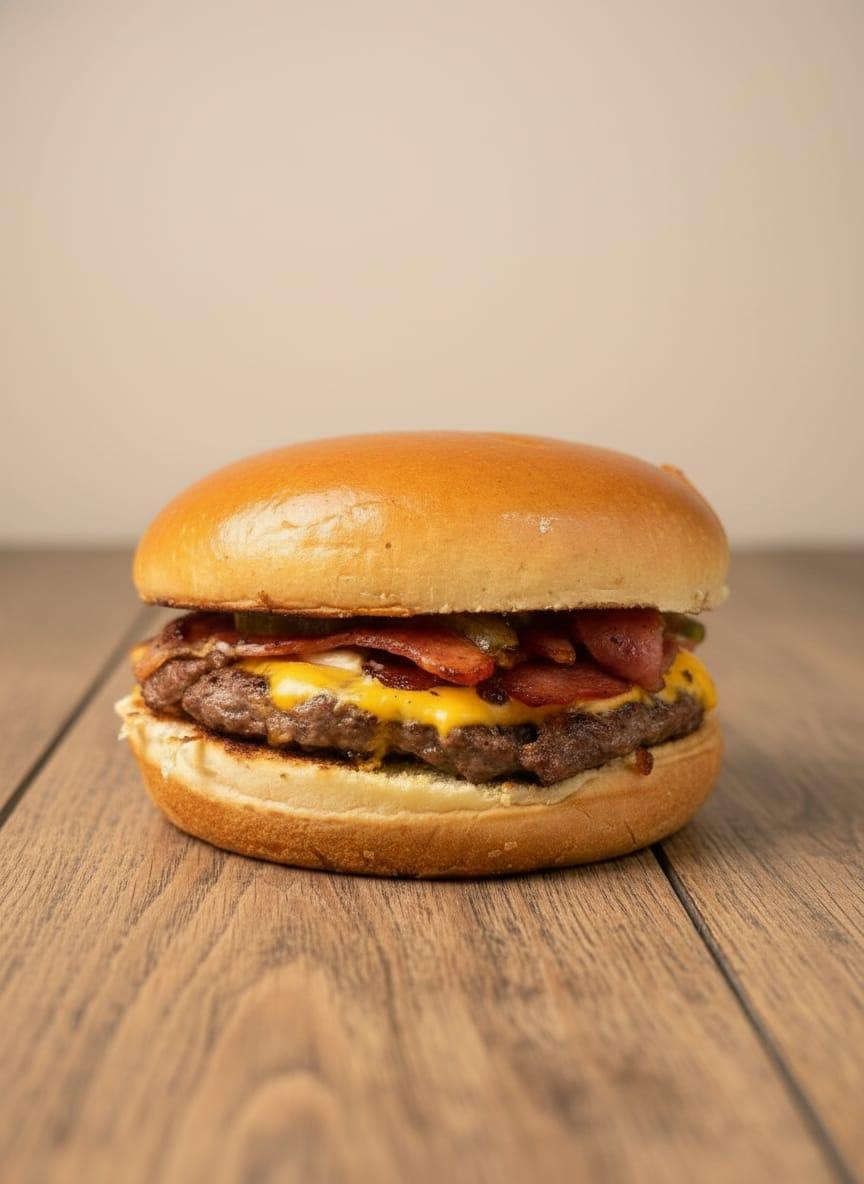 Pão de brioche,blend 100g,queijo cheddar,bacon,maionese da casa.